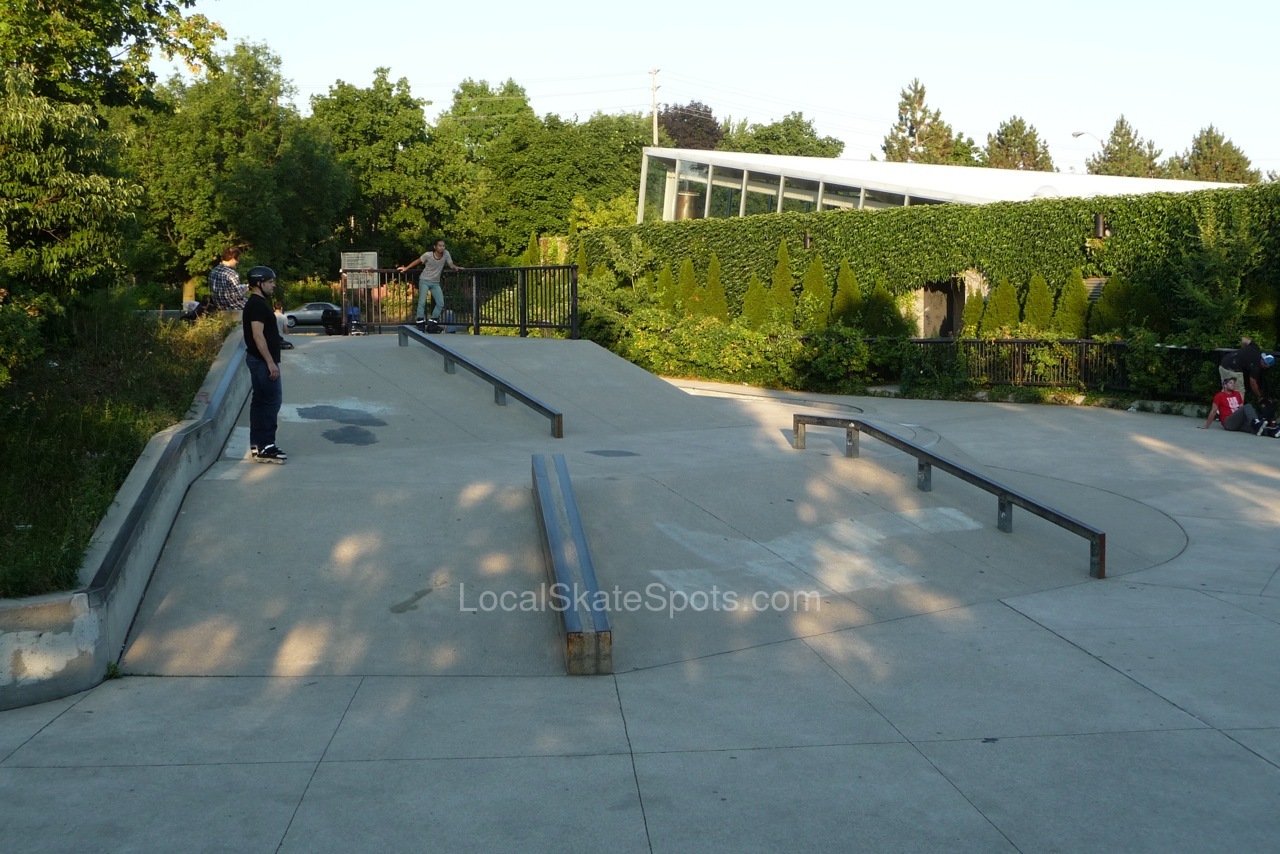 A hidden gem in North York featuring smooth concrete, several pyramid hips, and a great variety of flat bars.